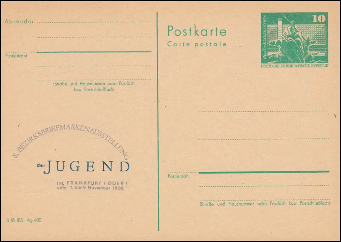 DDR P 79 Exposition de la jeunesse Francfort/Oder 1980, **