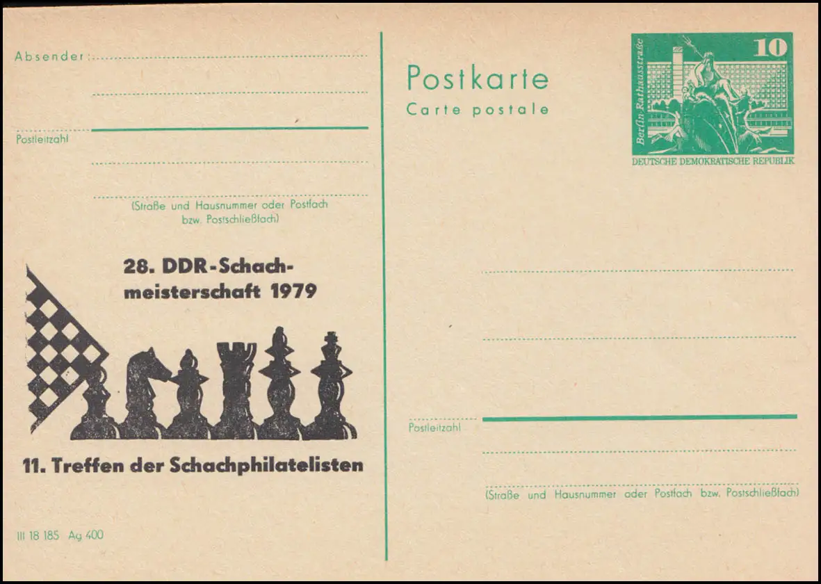 DDR P 79 Championnat d'échecs DD Schachphilatelisten Suhl 1979, **
