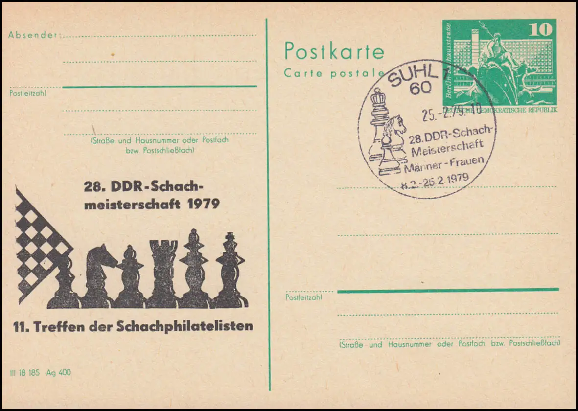 DDR P 79 Championnat d'échecs DD Schachphilatelisten Suhl 1979, SSt SUHL 25.2.79