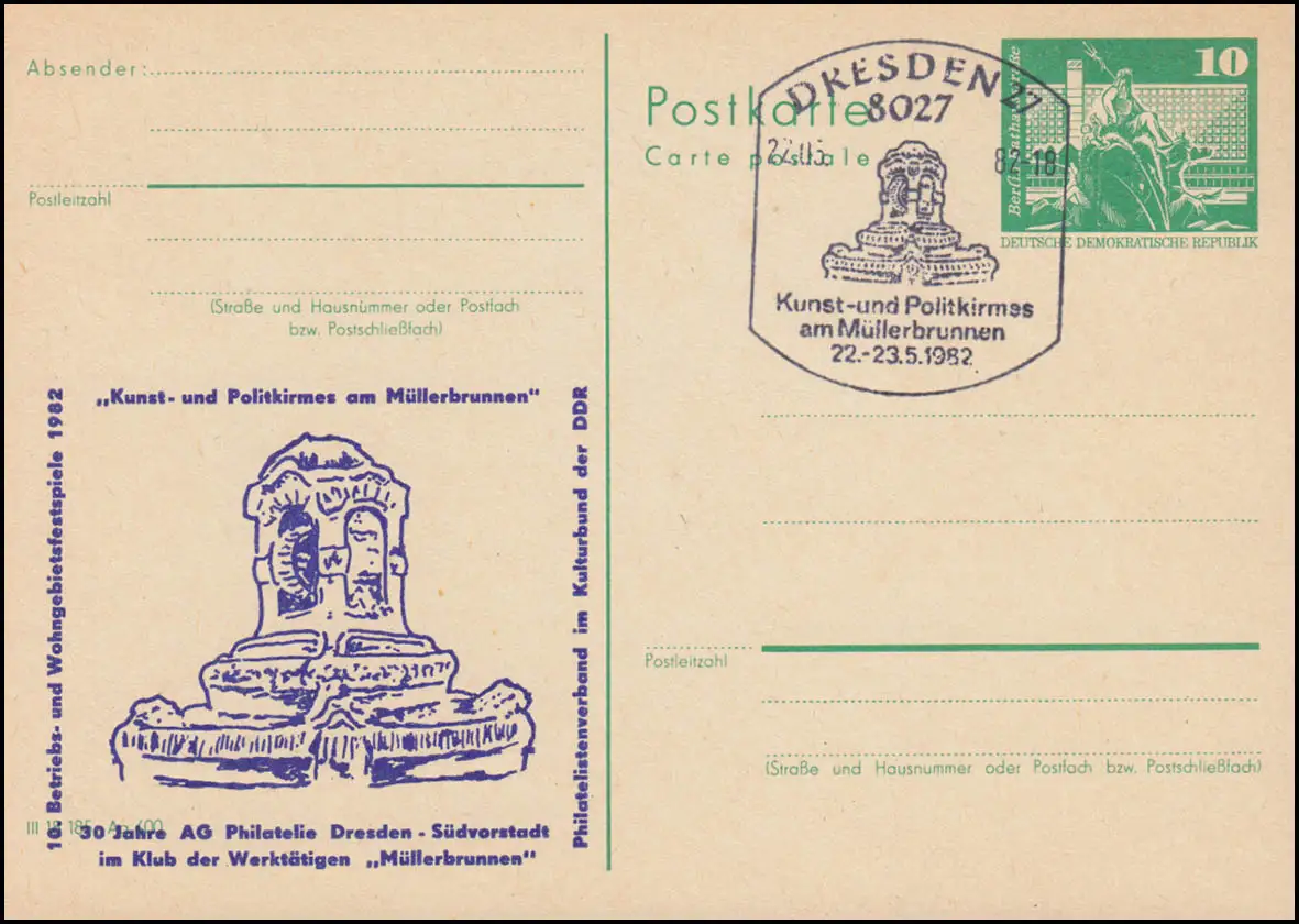 DDR P 79 Kirmes d'art et de politique à la fontaine de Müller Dresde 1982, SSt DRESDEN