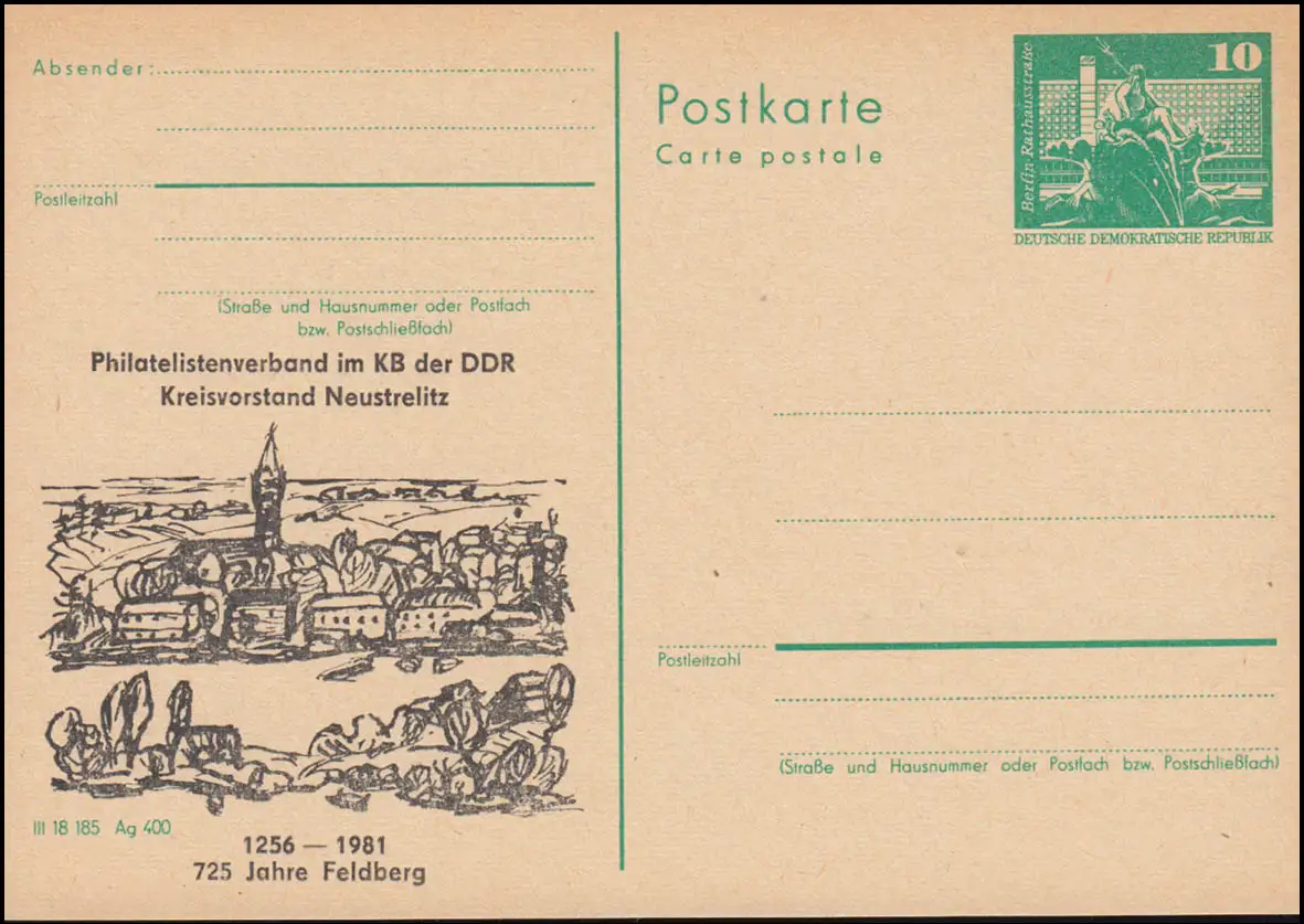 DDR P 79 Direction de district Neustelitz 725 ans Feldberg 1981, **