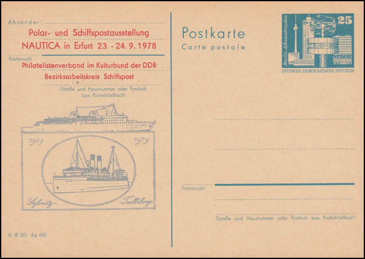 DDR P 80 ferry-boats Sassnitz-Trelleborg Exposition, SSt. ERFURT 23.9.1978