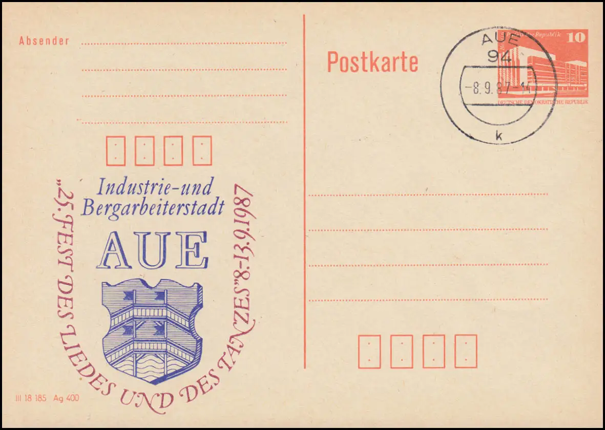 DDR P 86II Fête de la chanson et de l'aue 1987, AUE 8.9.87