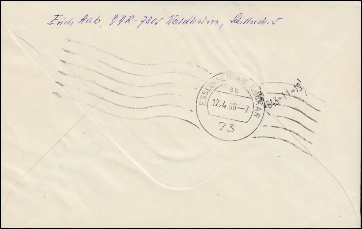 DDR U 3 Chemins de fer socialistes Eil-R-Lettre LEIPZIG 10.5.86 n. ESSLINGEN