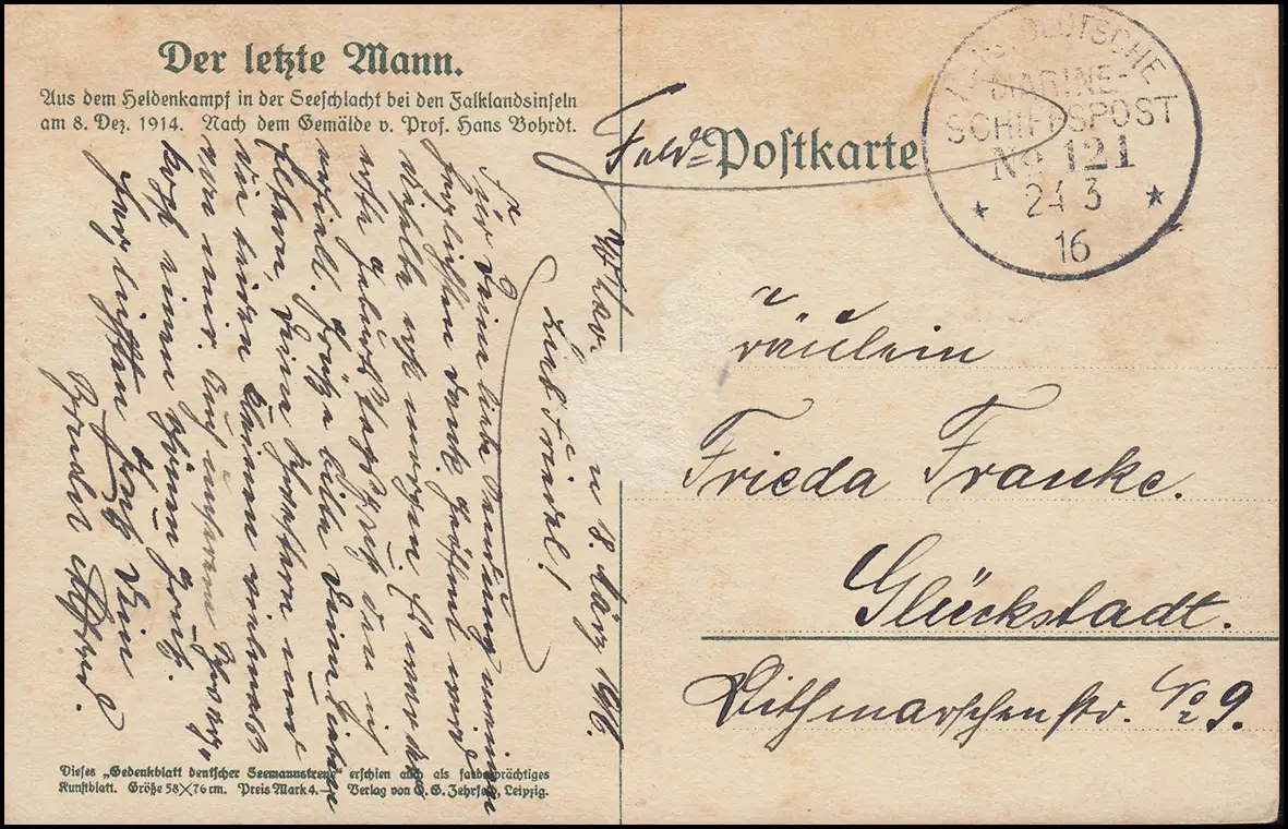 NAVIRE MARINE FRANÇAIS POST No 121 - 24.3.1916 sur le poste de terrain AK Le dernier homme