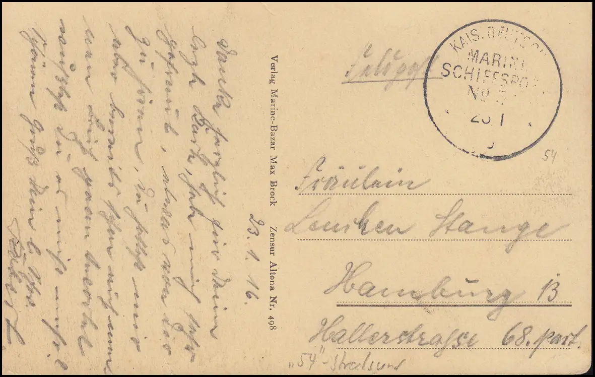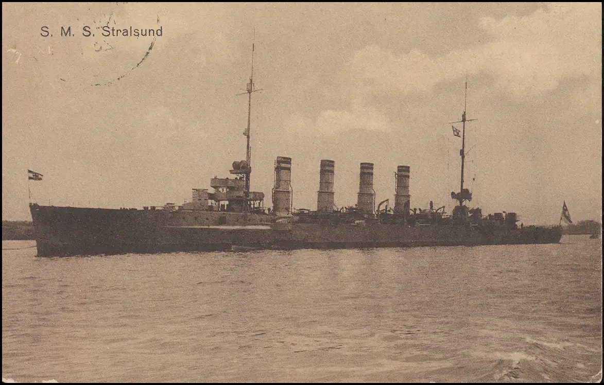 NAVIRE MARINE FRANÇAIS POST No 54 - 23.1.1916 SMS Stralsund sur AK approprié