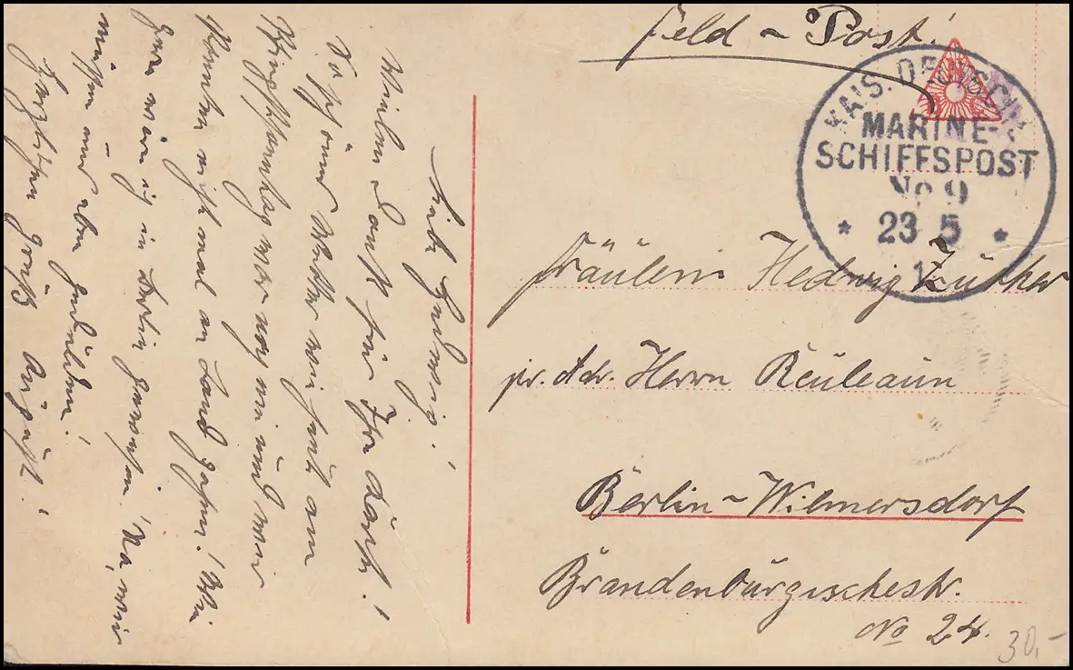 NAVIRE MARINE FRANÇAIS POST No 9 - 23.5. (1916?), portrait de l'AK de champ d'une femme