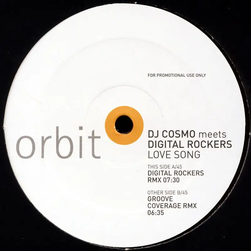 12" Maxi DJ Cosmo meets Digital Rockers - Love Song, Promo, Couverture neutre, État Platte M-; Made in Germany 2003 Orbit Records , Tracks [Digitaux Rokers RMX] 7:30, [Grooves Coverage RMX], 6:35