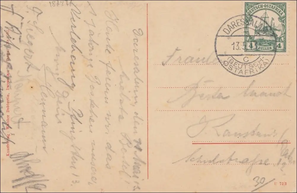 DOA: Carte de vue Daressalaam, 1913, Monument de l'empereur Guillaume, par Constance
