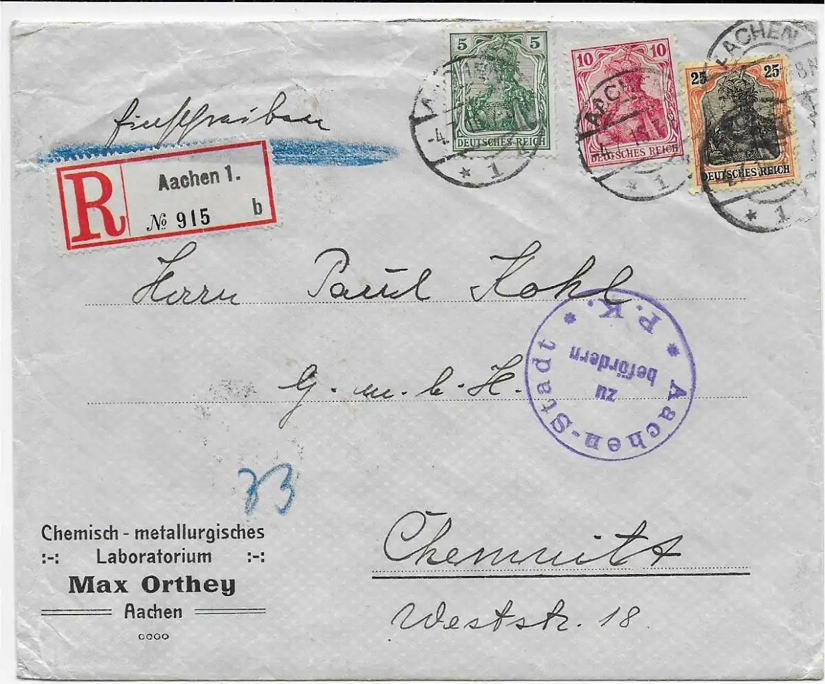 DR: Enregistrer Aachen vers Chemnitz 1916, censure Aix-la-Chapelle