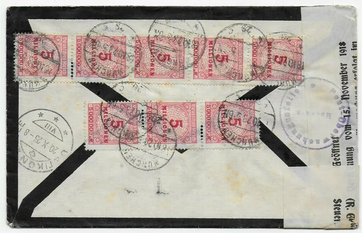 DR: Messager recommandé de Munich à Uetikon/Suisse, 18 octobre 1923