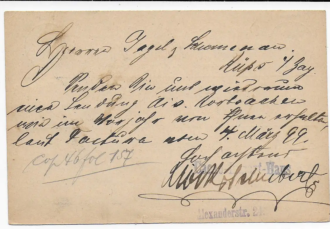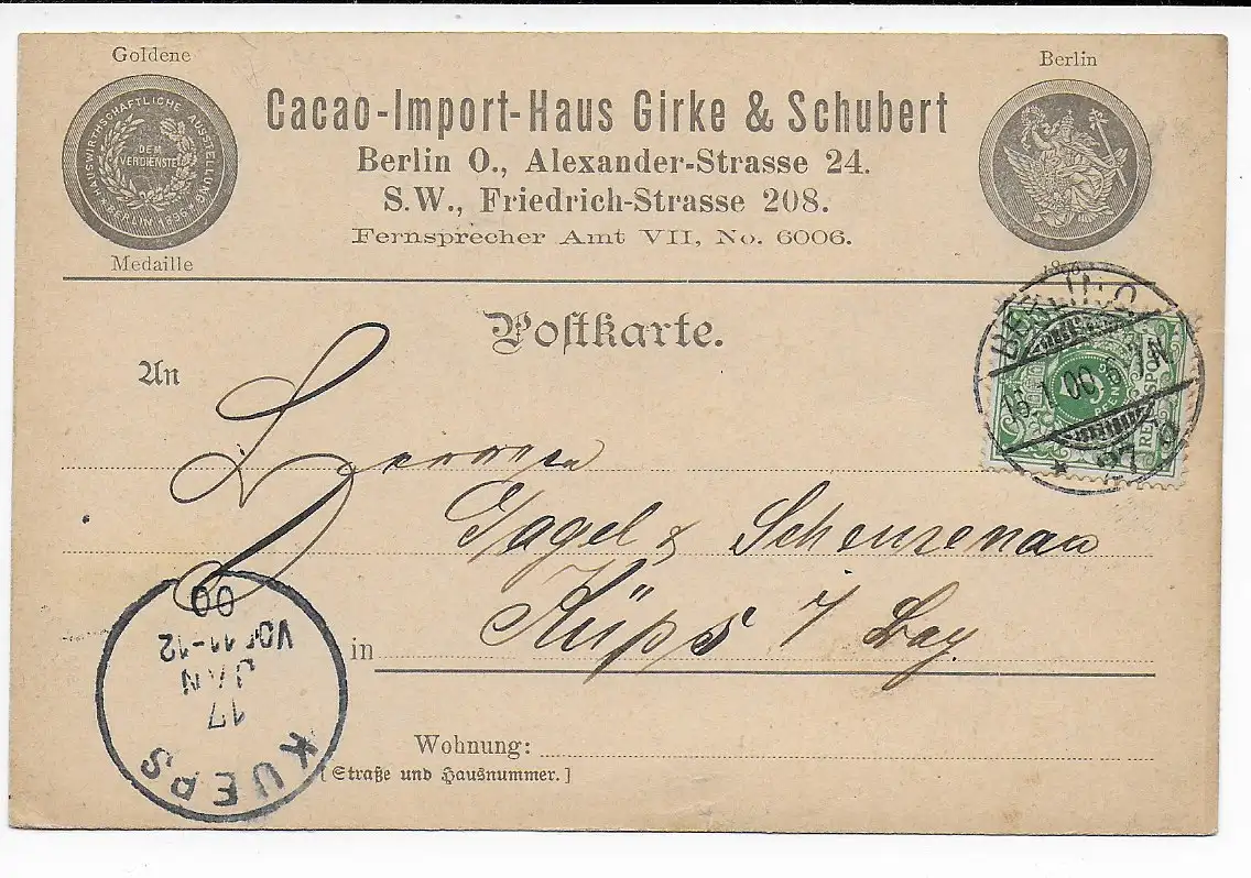 DR: Kakau-Import Berlin vers Kueps, 1900