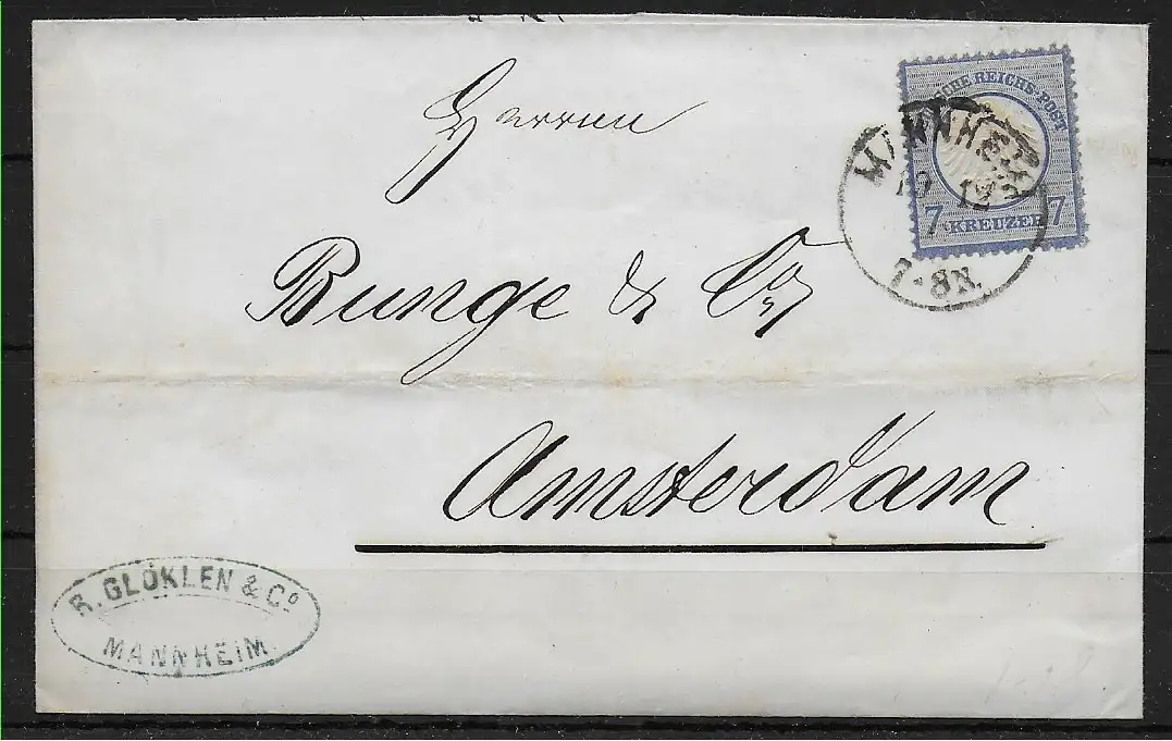 DR: Min. 10 EF sur lettre de Mannheim à Amsterdam, 1873