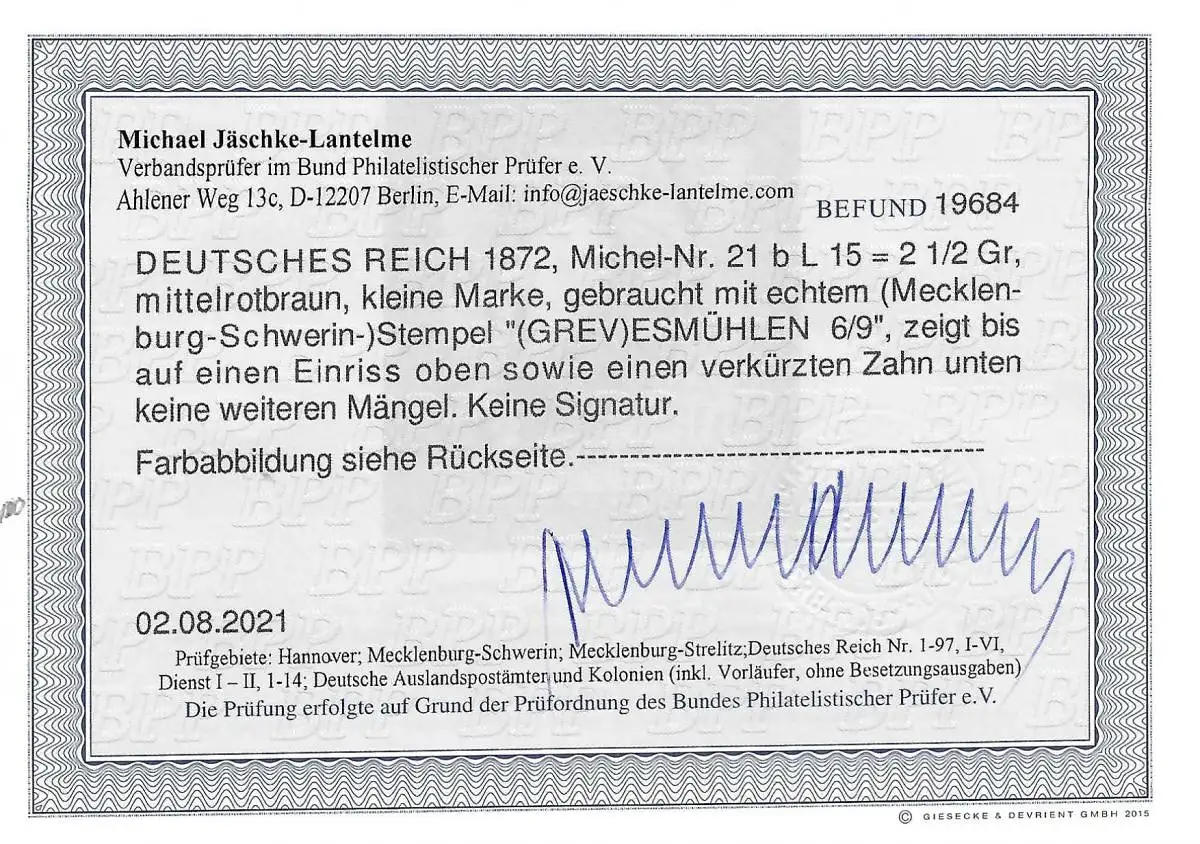 DR: Min. 21 b L 15 Tamponné Grevesmühlen, BPP résultat