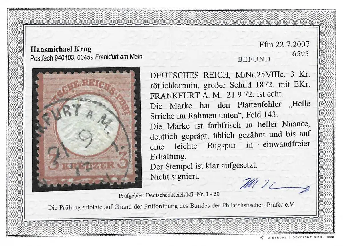 DR: MiNr. 25VIIIc, gestempelt Frankfurt, BPP Befund