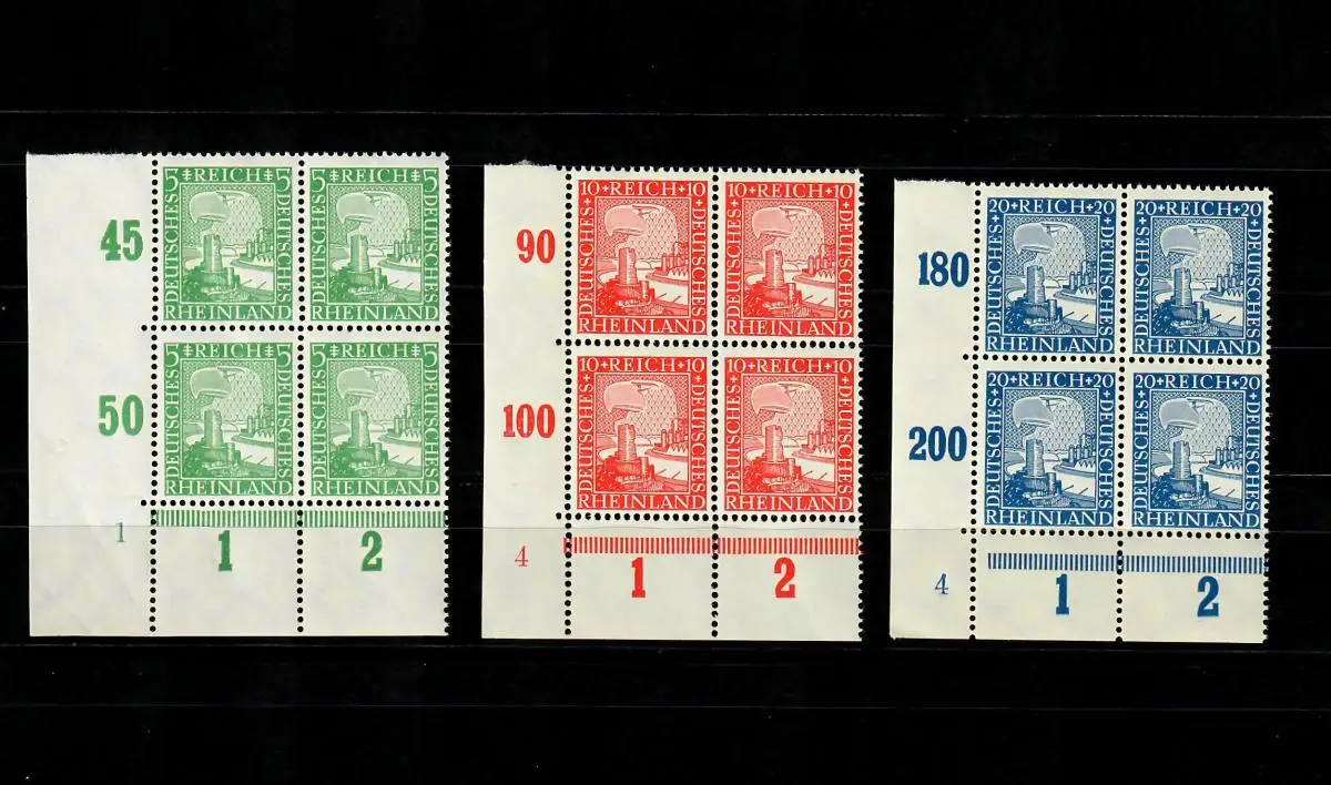 DR: Min. 372-374, frais, **, 4 blocs Eckrand VE3, numéro de plaque