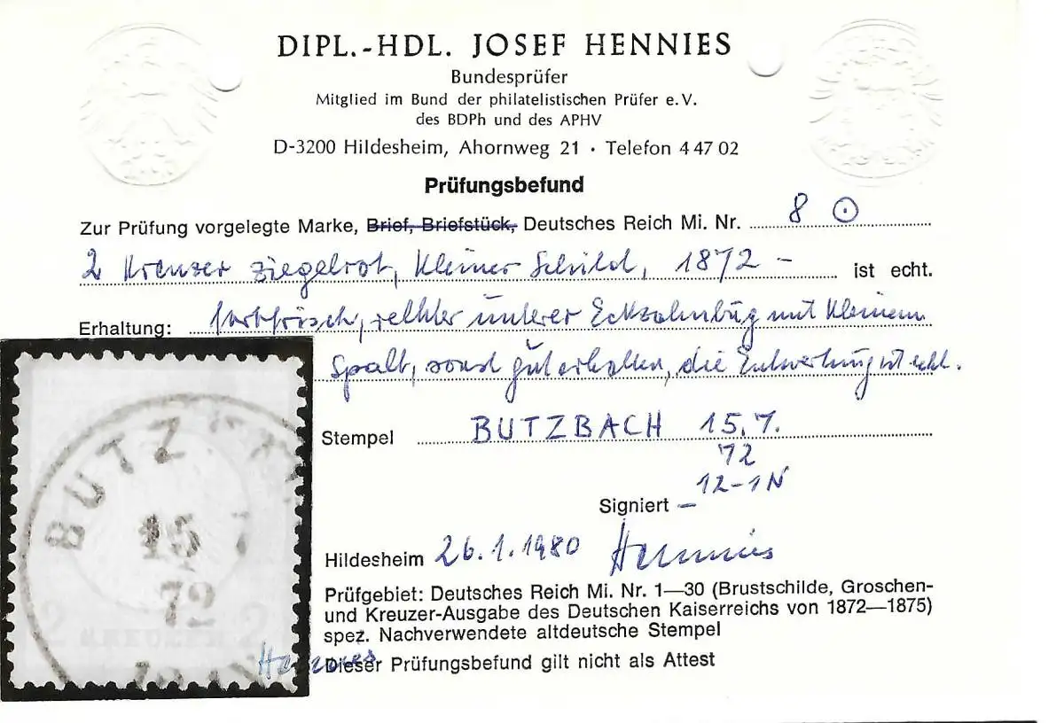 DR: MiNr. 8, cacheté Butbach, ancien résultat BPP