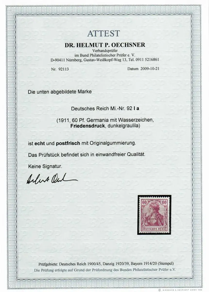 DR: Min. 92 I a, pression de paix, frais, **, BPP Attest