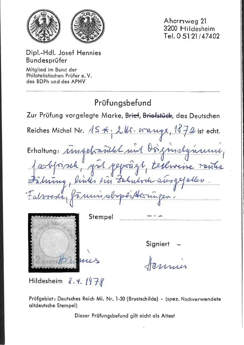 Une offre dans Timbres Reich allemand 1872-1874 - 1.251 autres offres dans cette catégorie