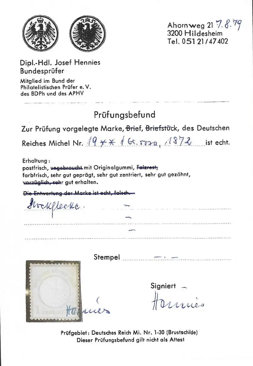 Une offre dans Timbres Reich allemand 1872-1874 - 1.253 autres offres dans cette catégorie