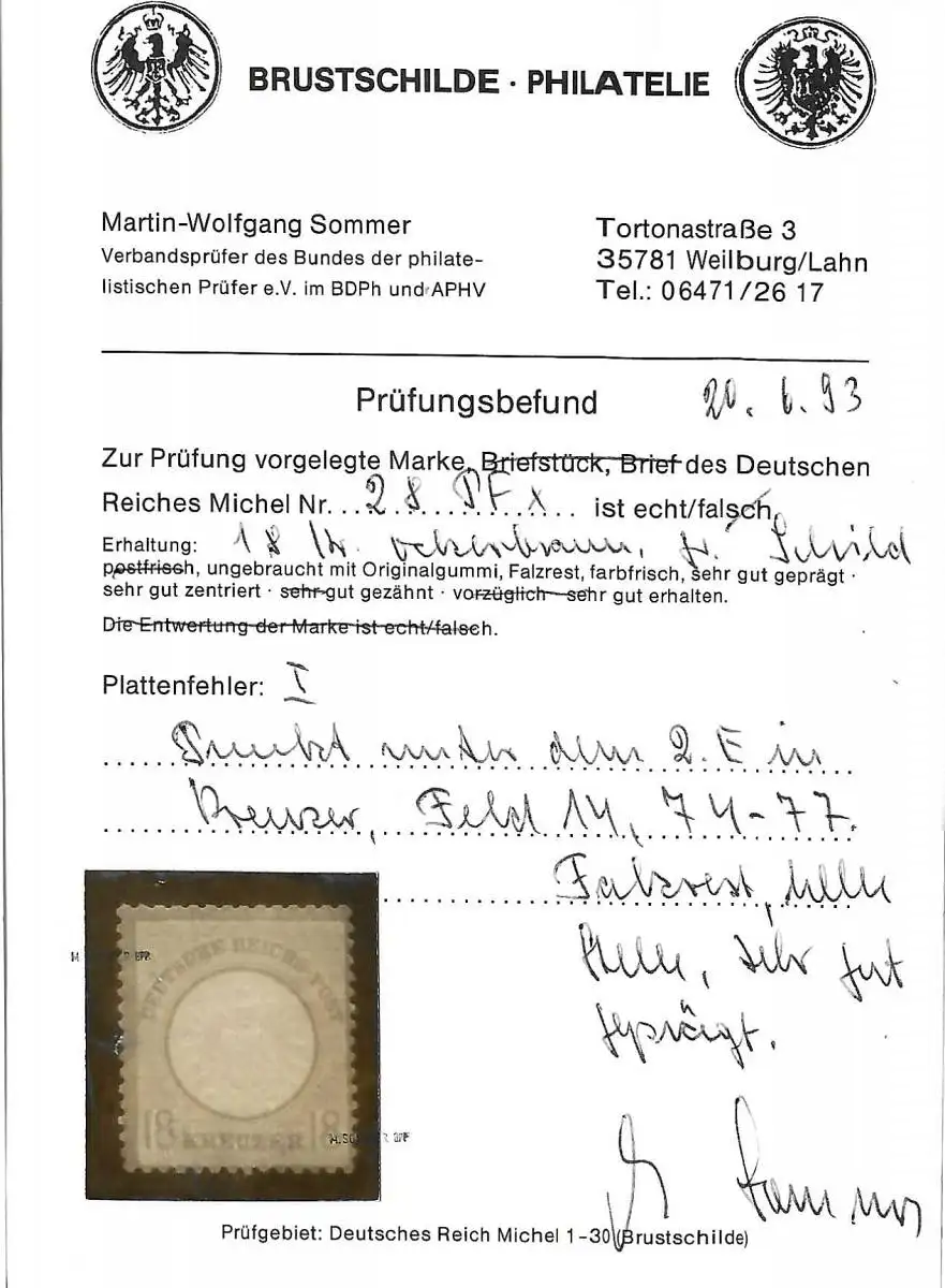 DR: Minn. 28, I, erreur de plaque, *, Falzrest, ancien résultat de BPP