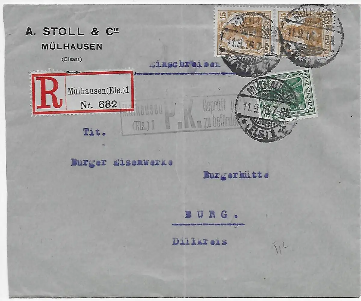 DR: Mülhausen/Els 1916 vers Burg/Dillkreis, censure MulhausEN