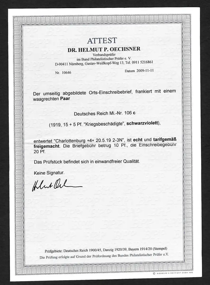 DR: lettre recommandée avec couple horizontal numéro 106c, BPP Attest