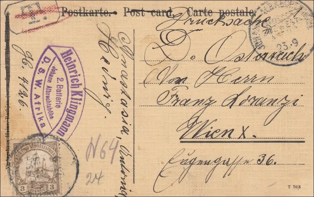 DSWA: Carte de vue Hottentotten comme un objet d'impression, 2e batterie à Vienne