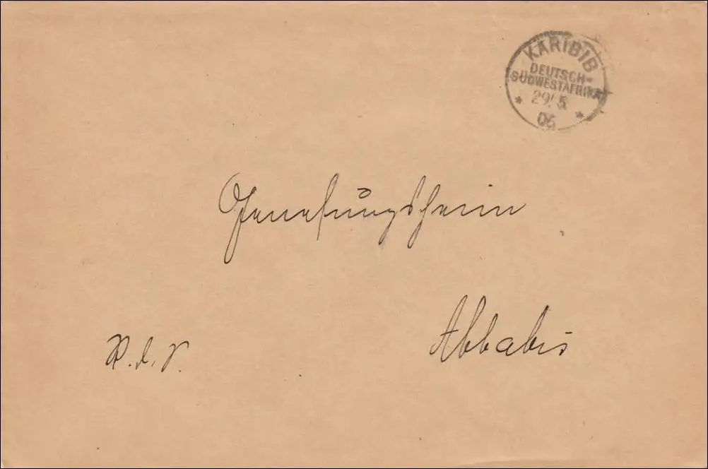 DSWA: Lettre Karibib - Forces de protection - Commandement des troupes -