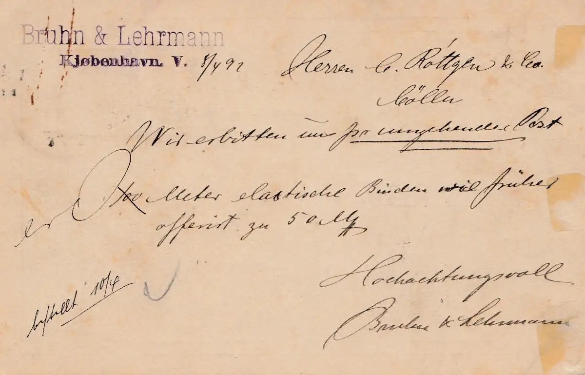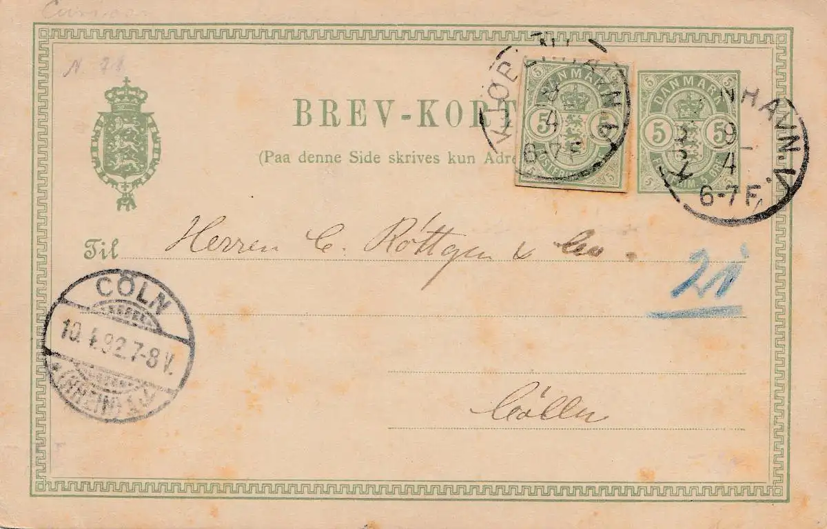 Danemark: 1892: Copenhague à Cologne: affaire entière