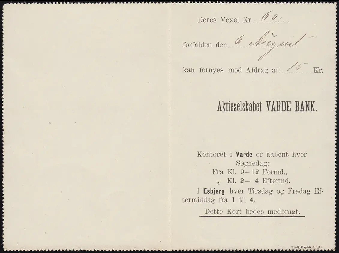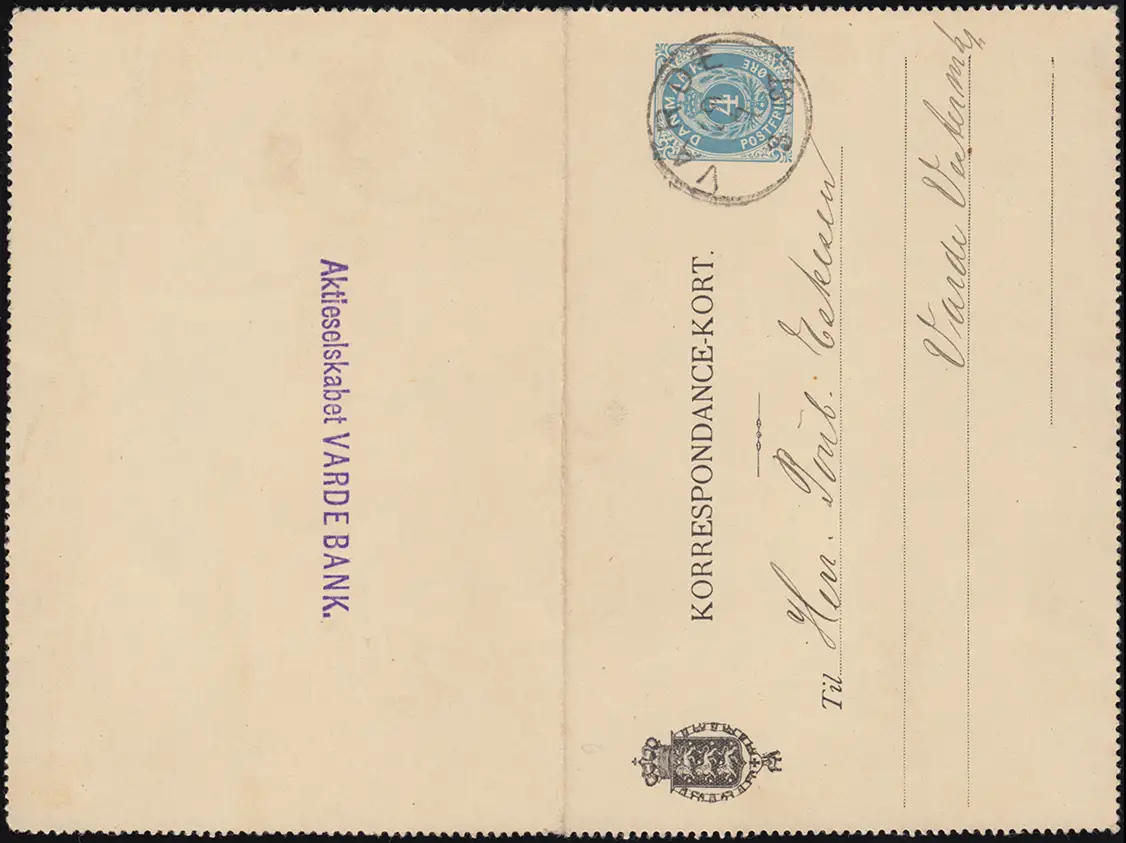 Danemark Cartes de crédit K 3, paragraphe 4 Öre, Aktien-Info Bank in VARDE 3 POST 29.7.