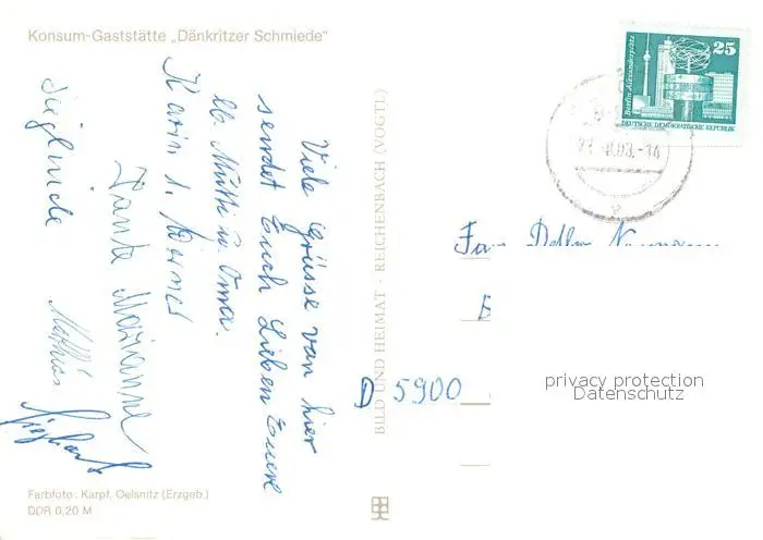 Daenkritz Konsum Gaststaette Daenkritzer Schmiede Biergarten Daenkritz postalisch gelaufen 1983 Erhaltung siehe scans [FriedD77] Frierer