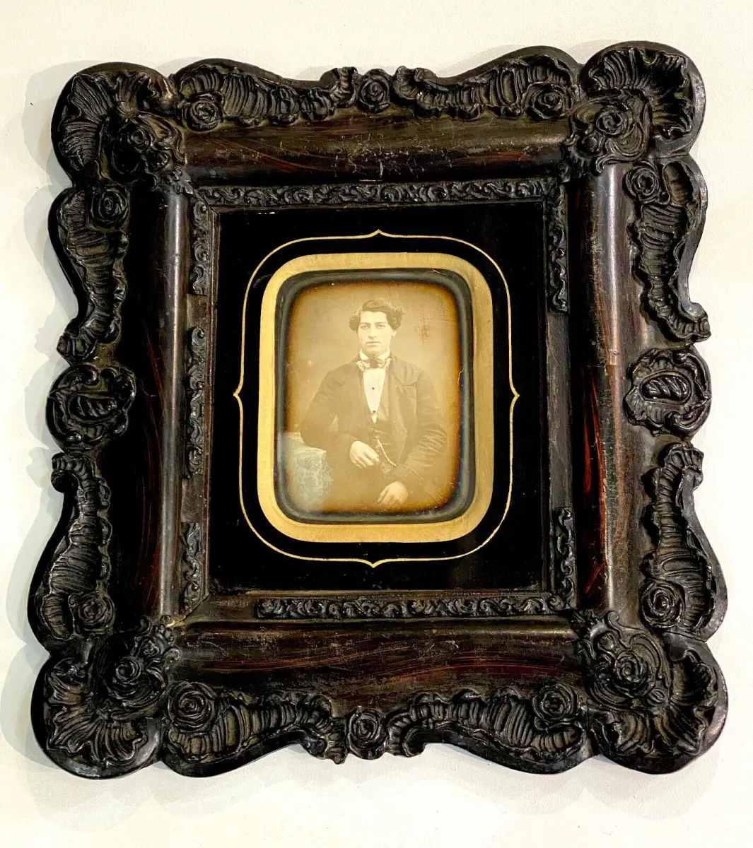 Le daguerréotype est le premier procédé photographique mis au point par Nicéphore Niépce puis Louis Daguerre et offert au monde entier (sauf au Royaume-uni) par la France en 1839. C’est à la fois un négatif et un positif d’où cet effet miroir caractéristique. On les appellera aussi poétiquement au XIXème siècle « les miroirs qui se souviennent ».