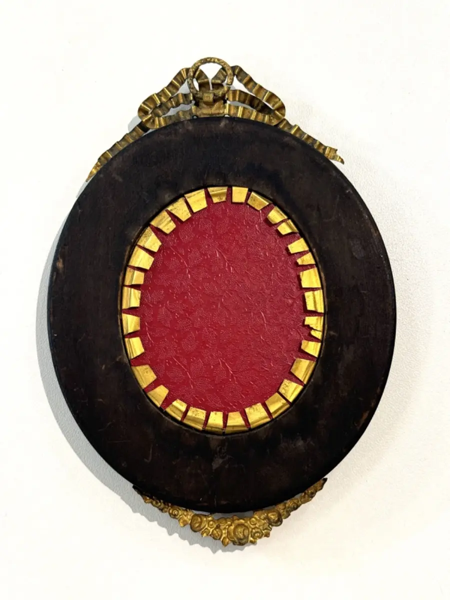 Dans son cadre d'époque en bois noirci serti d'un ruban de laiton .