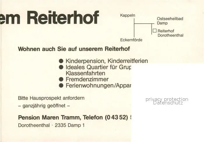 Damp Reiterhof Tramm Kinderpension Mehrbettzimmer Essraum Damp postalisch nicht gelaufen nach 1965 Werbekarte (keine Postkarte) Erhaltung siehe scans [FriedD77] Werbekarte (keine Postkarte) Frierer