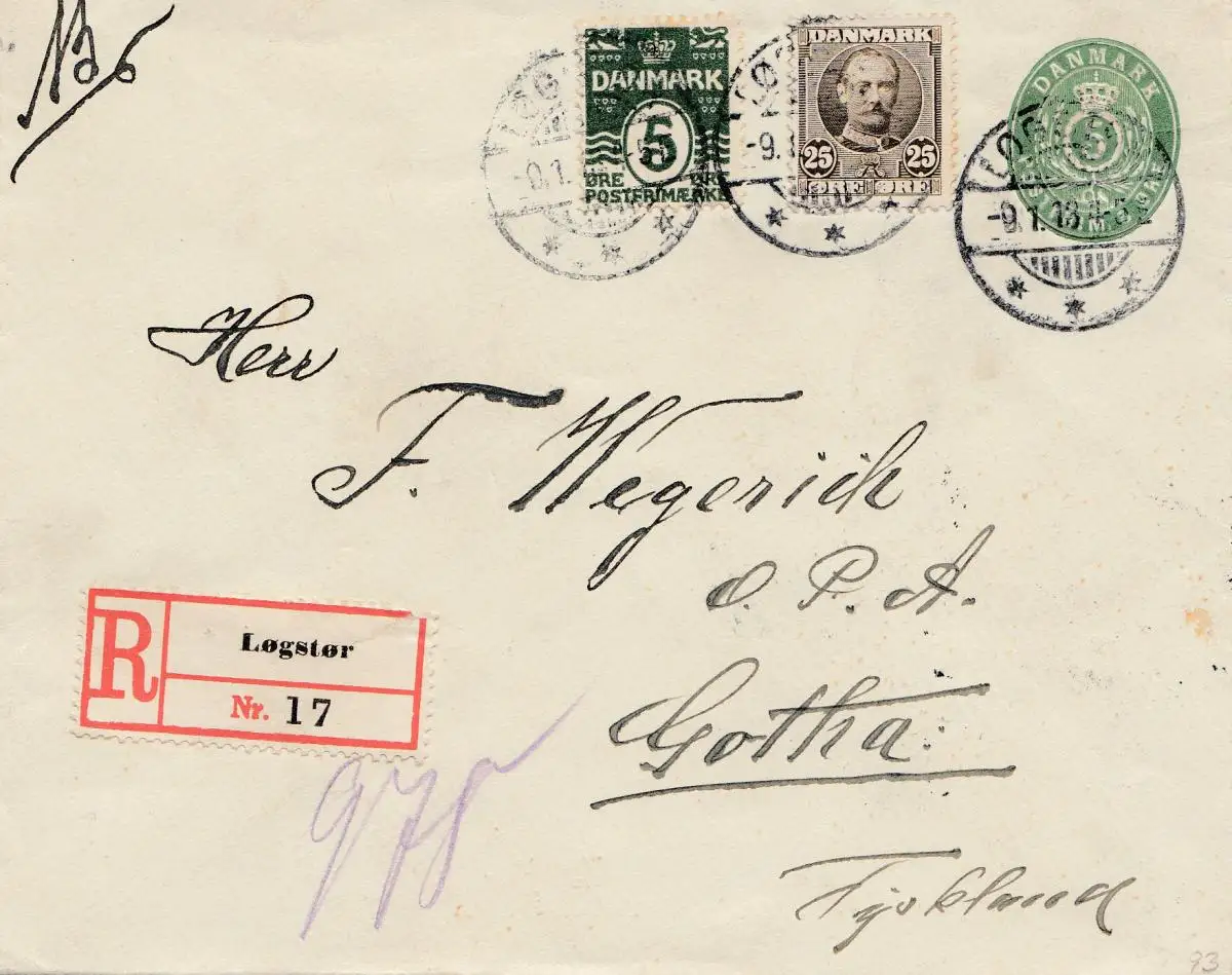 Danemark: 1913: Lettre recommandé de Logstor à Gotha