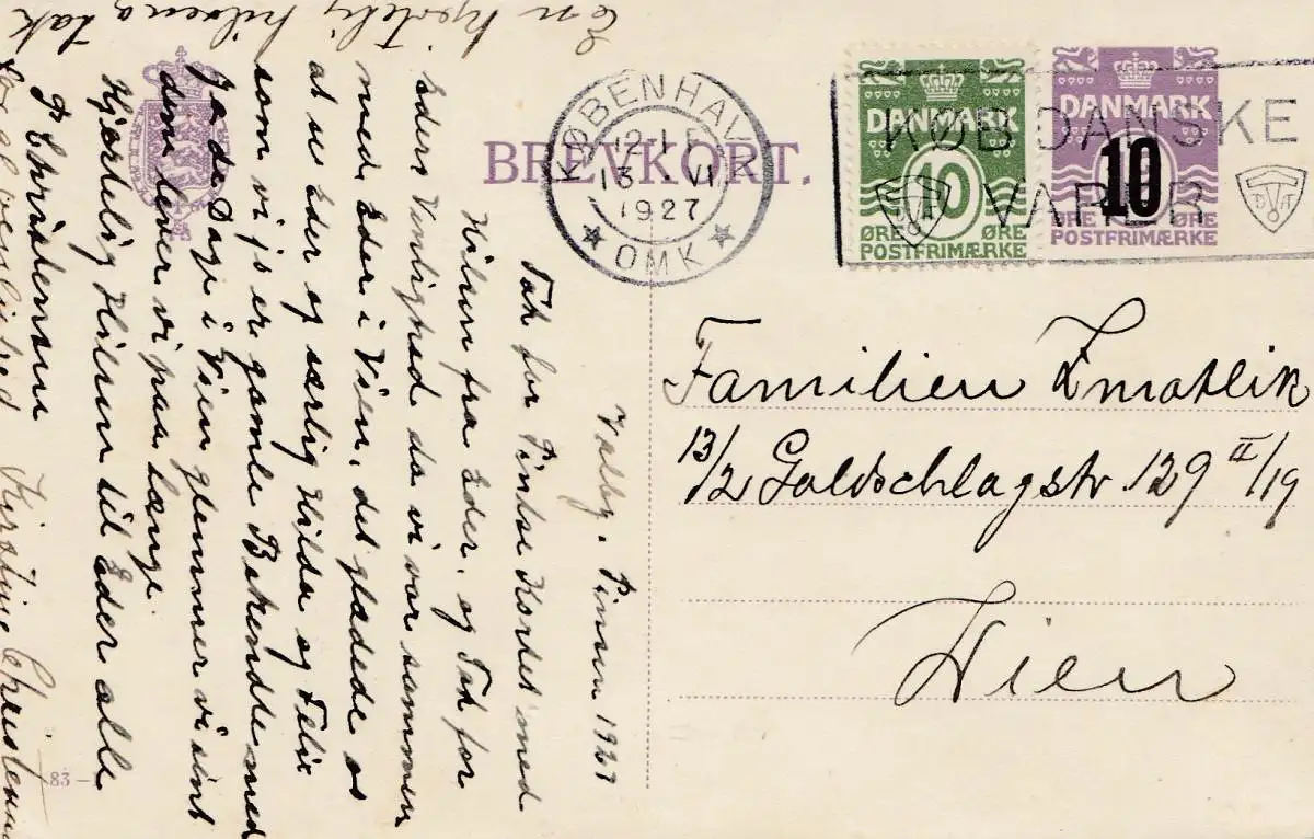 Danemark: 1927: Carte postale de Copenhague à Vienne