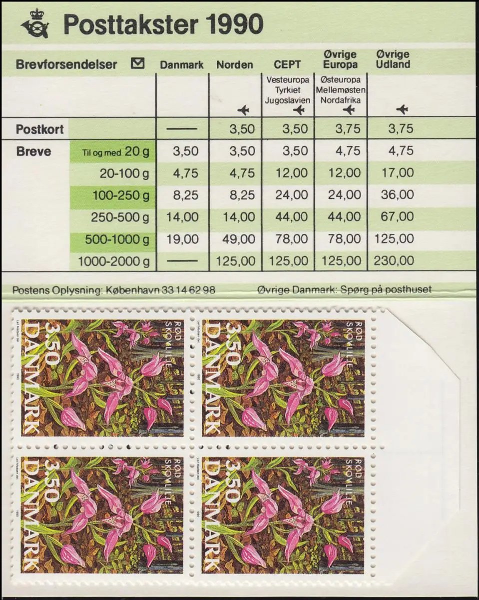 Danemark Carnets de marque 982 Fleurs: Lilie de la forêt rouge, ** frais de port