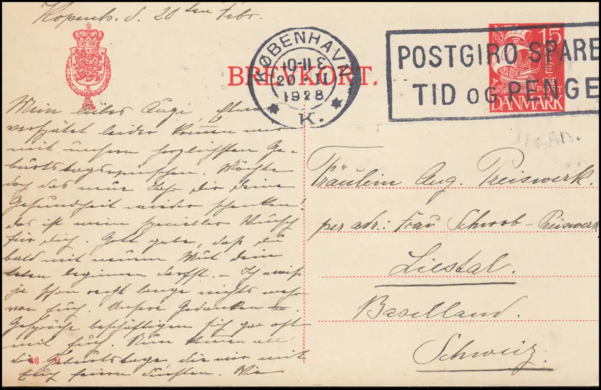 de Copenhague vers Liestal / Baselland N° de catalogue: P200 Examen: original Référence produit: 00000000036382>Note: Cet article n'est disponible qu'une fois. Vous recevrez exactement l'article représenté.