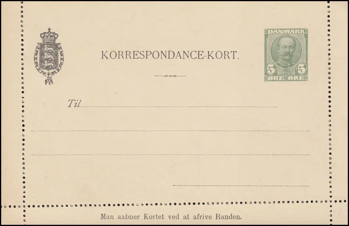 Danemark Lettre de carte K 26 Roi Frederik VIII 5 Öre 1910, inutilisé