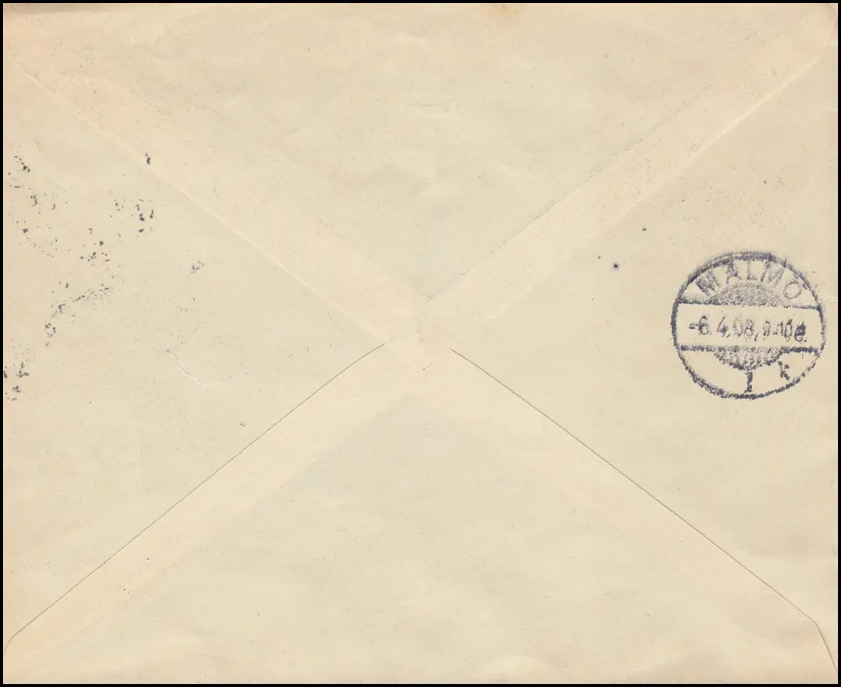 Danemark couverture U 18 chiffre 10 Öre, KJOBENHAVN K.K.B. 6.4.1908 vers MALMÖ 6.4