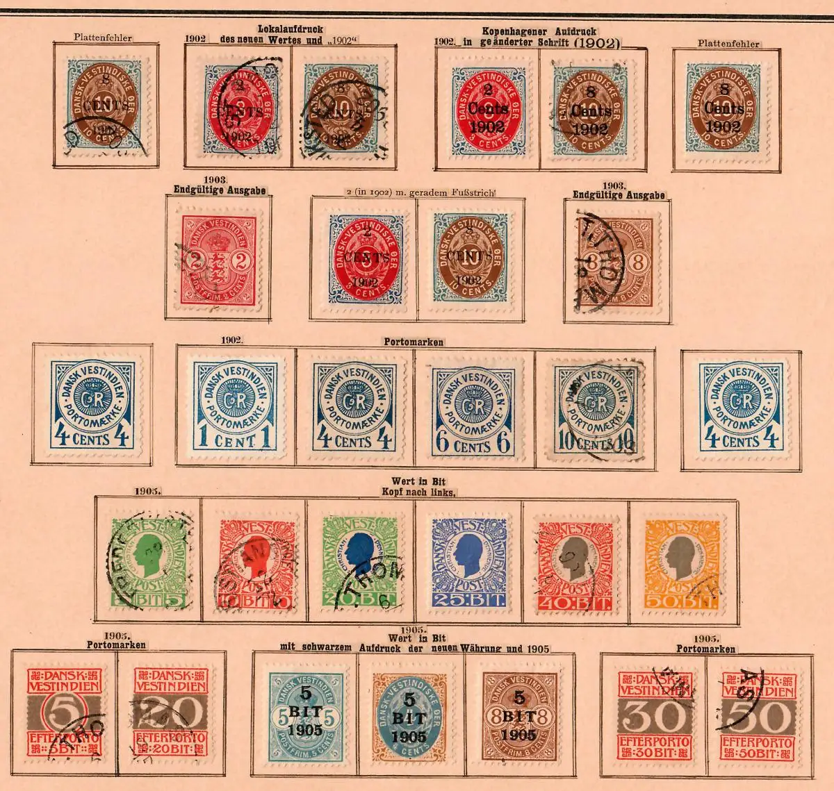 Voir Scan: collection on private designed sheets. cancelled and pendend danois WestInden collection presque complète, y compris les marques de Porto, n° 9 o/* Référence produit: 510008 Vérification: original Numéro d'article: 00000000510008