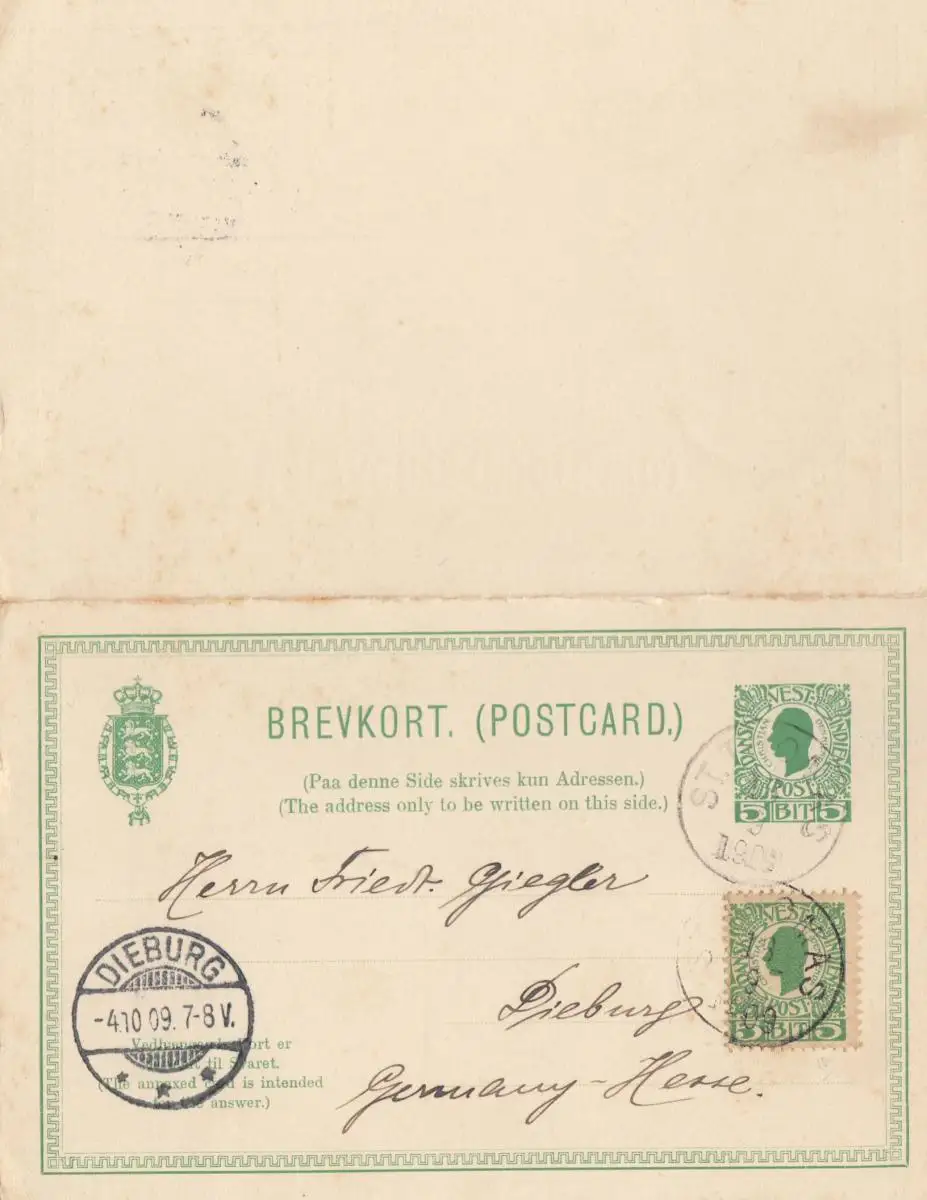 Dansk-Vestinien: 1909 St. Thomas post card to Dieburg