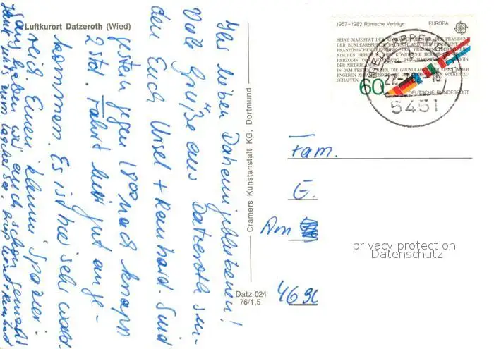 Datzeroth Panorama Datzeroth postalisch gelaufen 1987 Erhaltung siehe scans [WerneD78] WernPID7