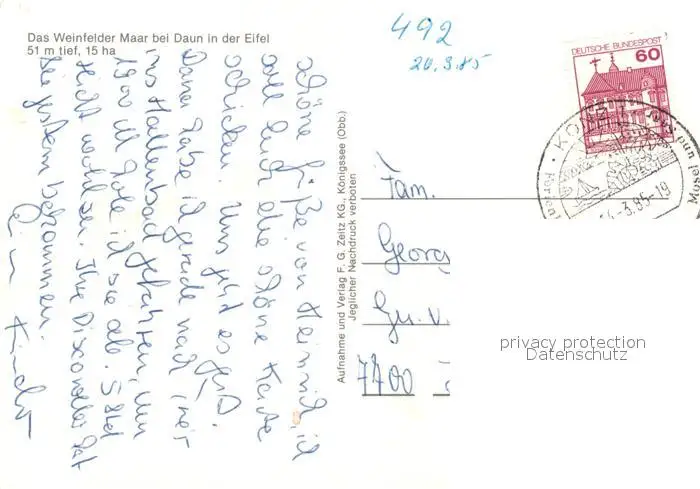 Daun_Eifel Weinfelder Maar Daun_Eifel postalisch gelaufen 1985 Erhaltung siehe scans [LiesaD40] LiesID40