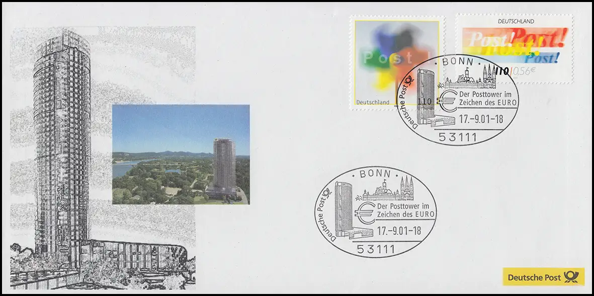 La posttower sous le signe de la lettre de bijoux en euro SSt BONN 17.9.2001