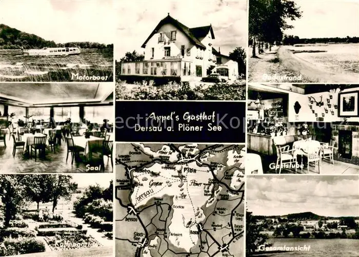 Dersau Appels Gasthof Motorboot Saal Strand Gaststube Kaffeegarten Panorama Dersau