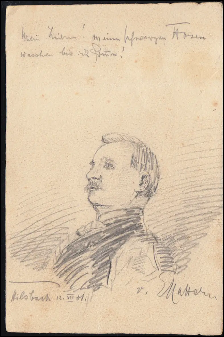 Dessin de crayon AK Artiste, HILSBACH 13.8.2001 après SANDHAUSEN