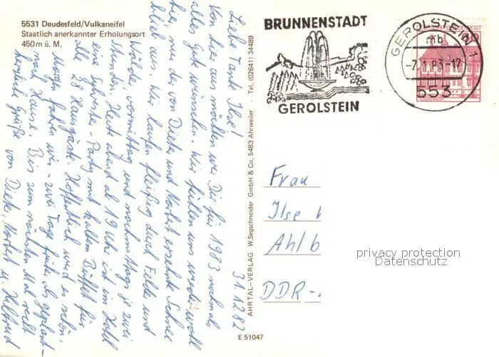 Deudesfeld Ortsansicht Maar Picknickplatz Panorama Deudesfeld postalisch gelaufen 1983 Erhaltung siehe scans [WerneD78] WernPID7