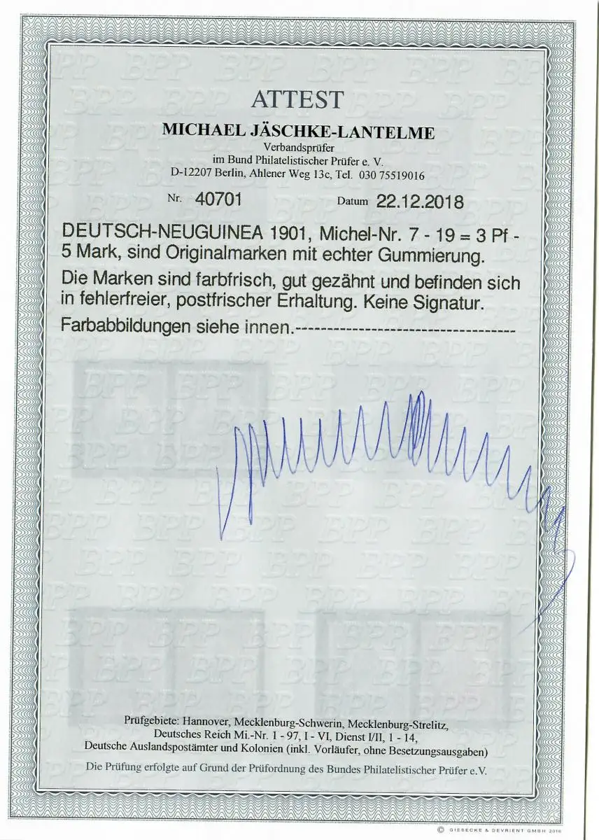 Nouvelle-Guinée: Min. 7-19, postfraîchissement, **, BPP Attest